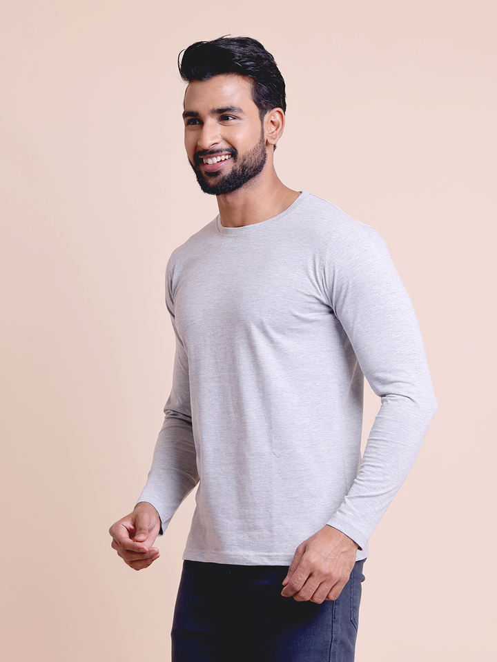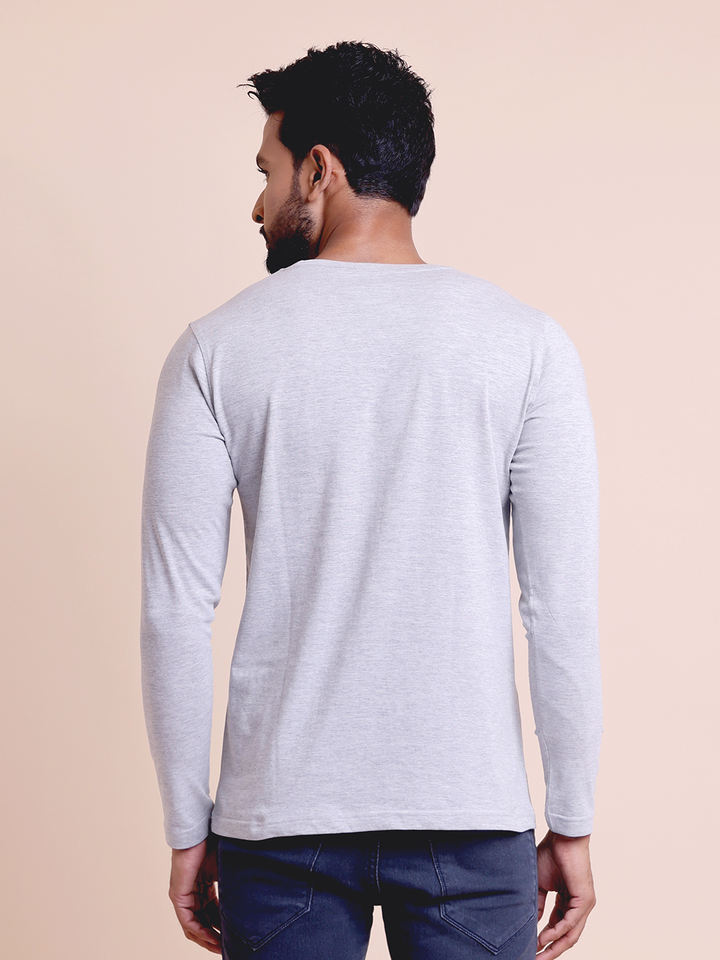 เสื้อเชิ้ตแขนยาวสำหรับผู้ชายแบบลำลองมีโลโก้ตามสั่งเสื้อยืดแขนยาวแบบสีเทา