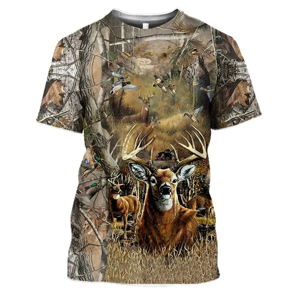 เสื้อยืดลำลองสำหรับผู้ชายลายพรางลาย3D ลายป่าล่าเป็ดเสื้อแฟชั่นฮาราจูกุ
