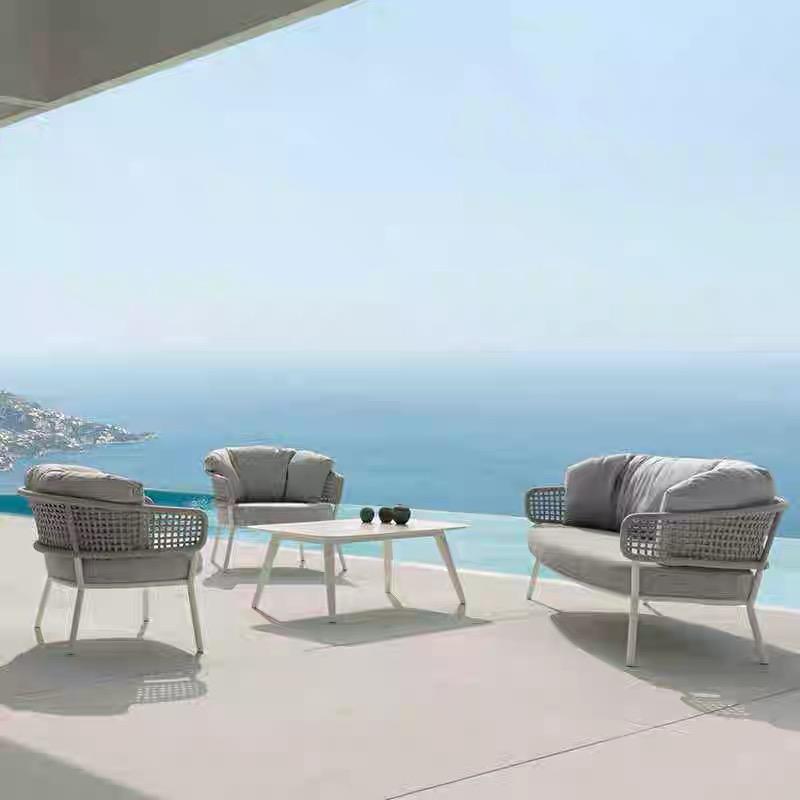 ชุดโซฟาไม้กลางแจ้งแบบโมเดิร์นชุดโซฟา3ที่นั่งโซฟาในสวนแบบแยกส่วน