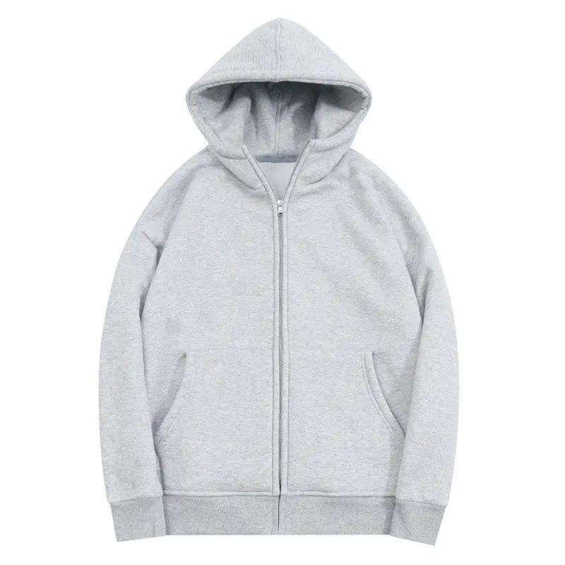 เสื้อฮู้ดซิปโอเวอร์ไซส์ลำลองสำหรับผู้ชาย ผ้าฝ้าย 100% หนานุ่ม ใส่ได้ในฤดูหนาว