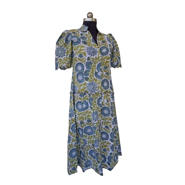 ชุดเดรสลำลองสำหรับงานปาร์ตี้ ชุดแต่งงาน ชุดฤดูร้อน ชุดเดรสผ้าฝ้ายลายดอกไม้พิมพ์มือ สไตล์คังกูราสำหรับผู้หญิง กำลังเป็นที่นิยม