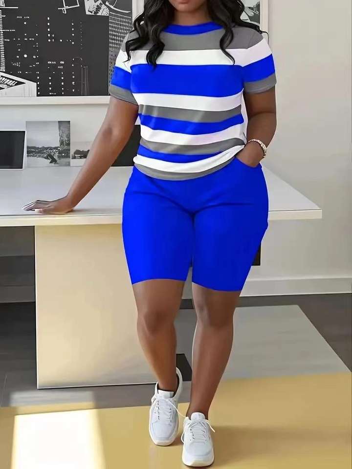 ชุดเซ็ตเสื้อและกางเกงขาสั้นเหนือเข่าลายพิมพ์ลำลองสำหรับผู้หญิง 2 ชิ้น ผ้าถักสำหรับฤดูใบไม้ผลิ ป้องกันการเป็นขุย ผลิตจากผ้าสแปนเด็กซ์/โพลีเอสเตอร์