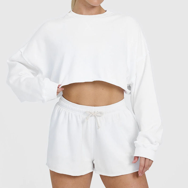 เสื้อสเวตเตอร์ลำลองสตรีทแบบสวมหัวเสื้อสเวตเตอร์แขนยาวคอกลมเสื้อสเวตเตอร์สั้นเสื้อครอปแนวสปอร์ตสำหรับผู้หญิง
