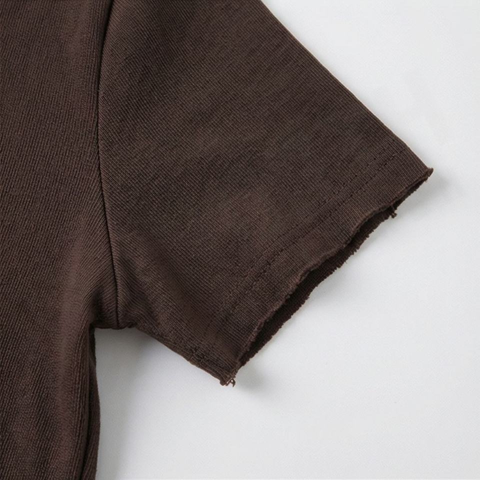 เสื้อยืดแฟชั่นฤดูร้อนสำหรับผู้หญิง ปักลายกระต่ายประดับลูกปัด แขนสั้น ทรงเข้ารูป คอโอ ผ้าถัก