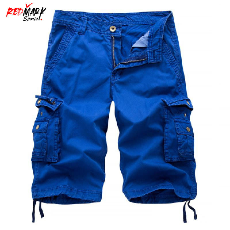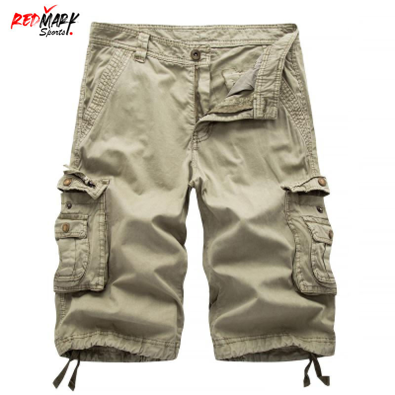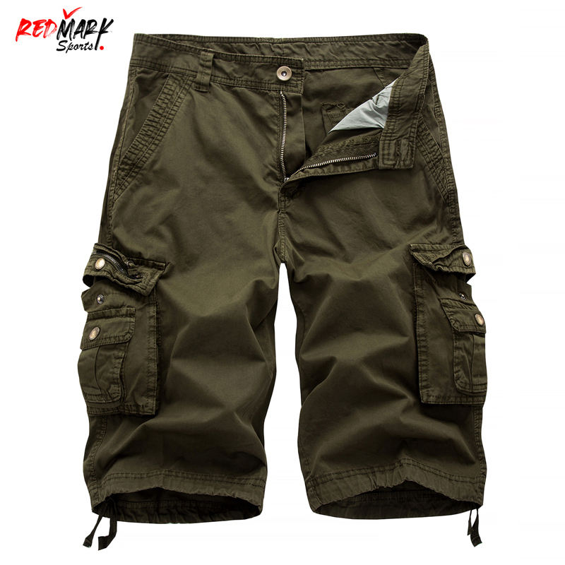 กางเกงขาสั้นลำลองผู้ชาย กางเกงคาร์โก้ผู้ชายแฟชั่น กางเกงคาร์โก้หลายกระเป๋าผู้ชาย ผ้าฝ้ายสีพื้น ความยาวระดับเข่า ทรงตรง