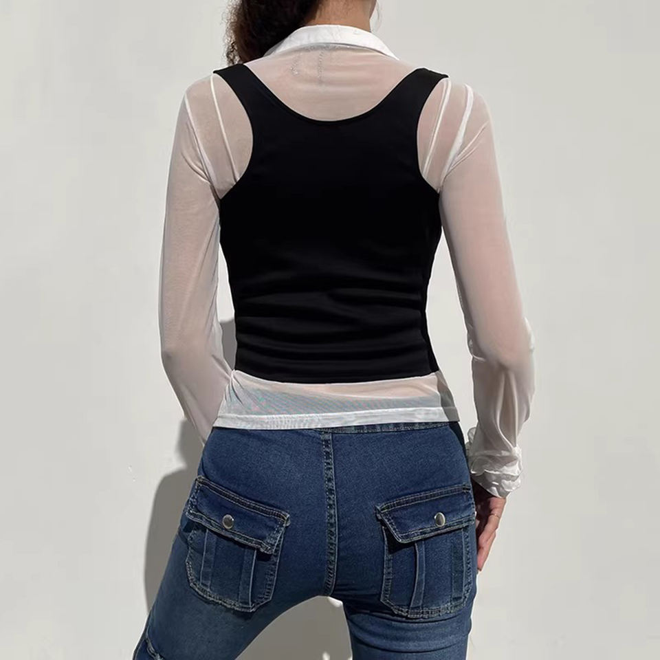 เสื้อกล้ามรัดเอวระบายอากาศสีทึบแขนกุดลำลอง