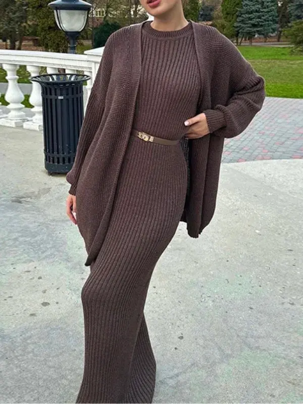 เสื้อคลุมคาร์ดิแกนถักไหมพรมทรงสลิมฟิตสไตล์ลำลอง กระโปรงทรงตรง คอตรง ผ้าไม่ยับ สีลูกกวาด แฟชั่น