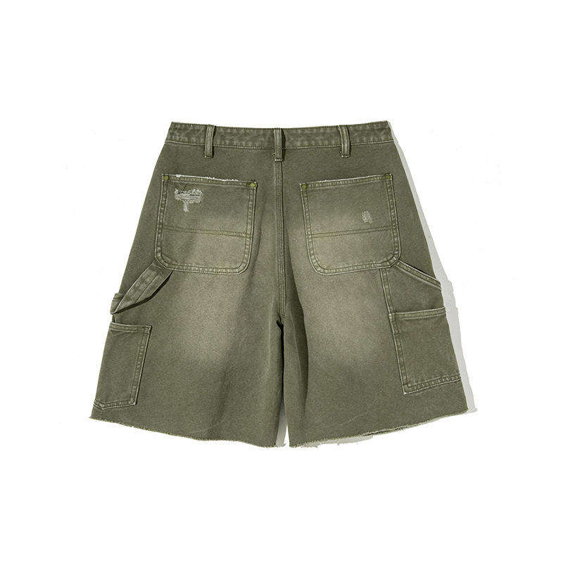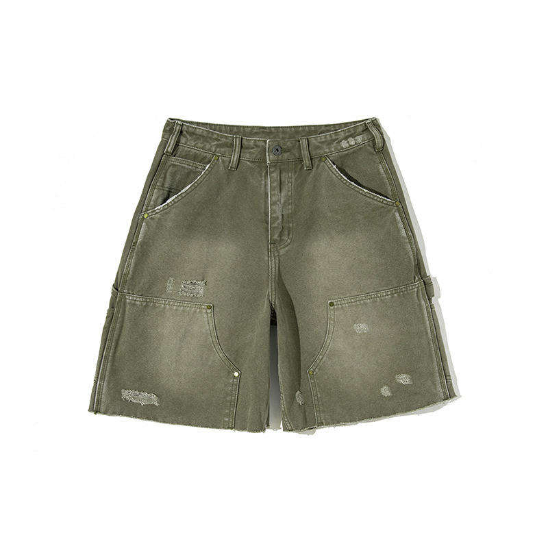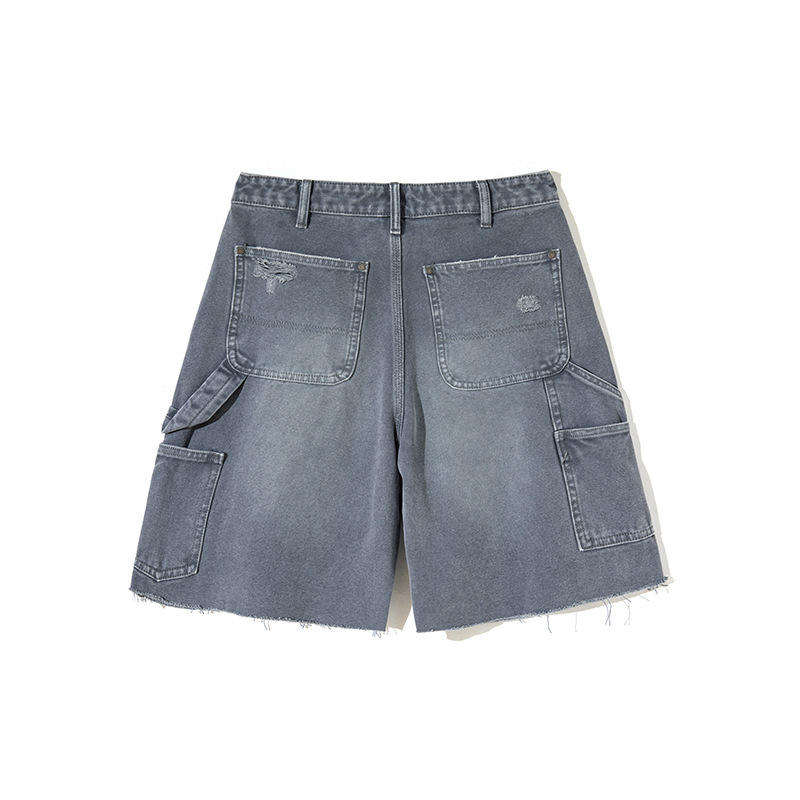 กางเกงขาสั้นผ้ายีนส์ทรงแบ็กกี้สำหรับผู้ชายกางเกงขาสั้นอินเทรนด์ผ้ายืดสีทึบลำลองผลิตตามสั่ง