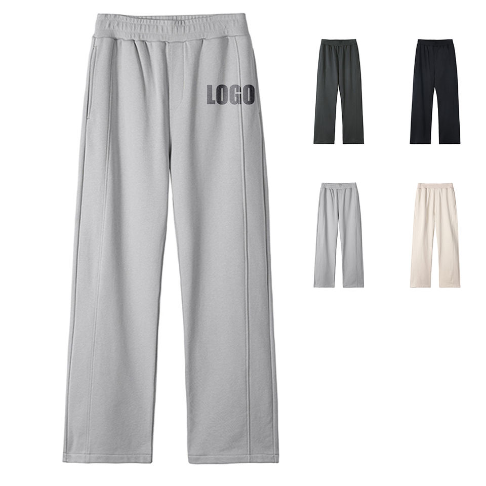 กางเกงลำลองขายาวผ้าเทอร์รี่สีทึบแบบลำลองสำหรับผู้ชายกางเกงยาวตรงเข้ารูปแบบนุ่มสบายพร้อมสายรัดเอวยางยืด