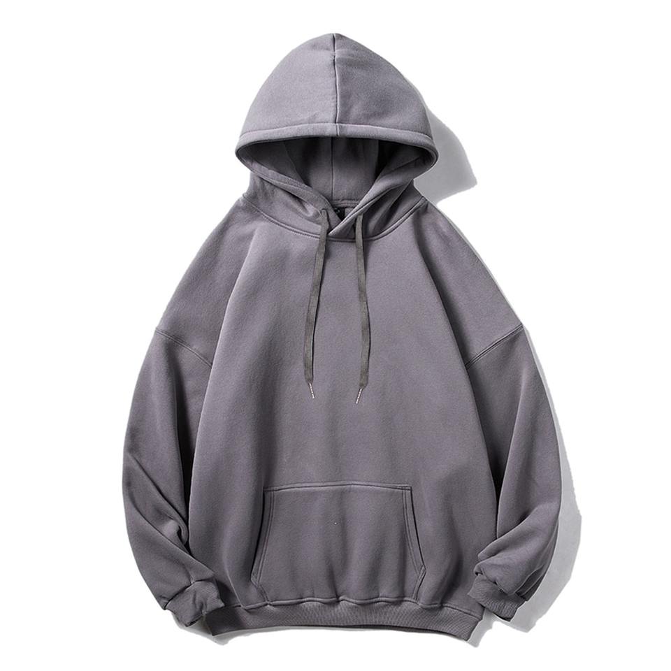 Casual Solid Colors Dropped Shoulder Sleeve Hooded Hoodies With Drawstring Pockets Oversized Grey Hoodies Sweatshirts