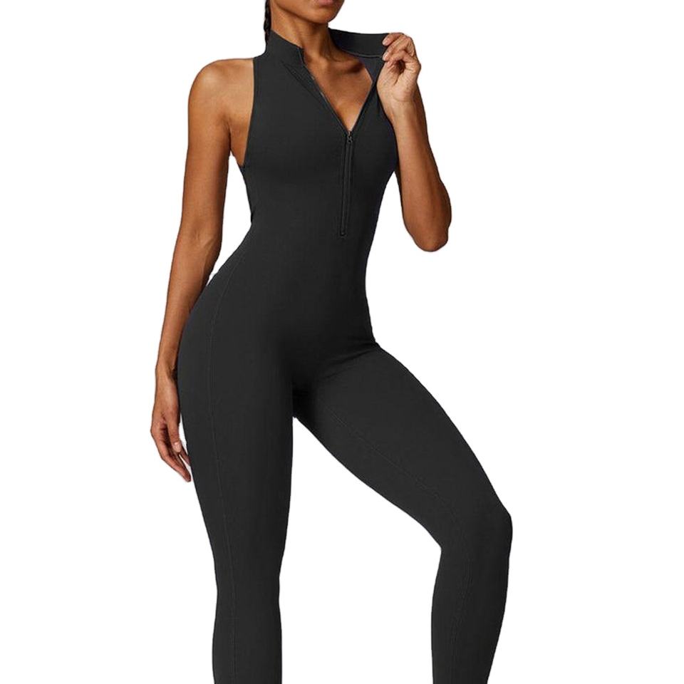 ชุดบอดี้สูทลำลองแบบสปอร์ต ชุดจั๊มสูทแบบชิ้นเดียว สายรัดไขว้หลัง ยืดหยุ่นได้ เหมาะสำหรับวิ่ง ออกกำลังกาย โยคะ ชุดจั๊มสูทแบบรัดรูป