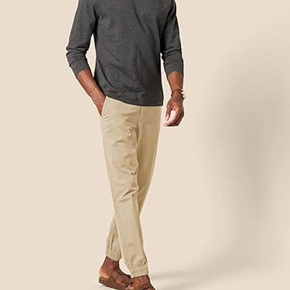 กางเกงจ็อกเกอร์เรียวยืดลำลองเอวยางยืดและเชือกผูกสำหรับทำงานกางเกงวิ่งชิโนทรงตรงผู้ชายสีน้ำตาลกากี