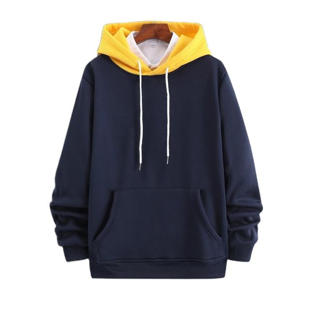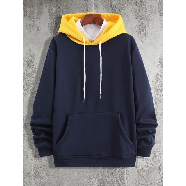 เสื้อฮู้ดดี้สไตล์ลำลองสีตัดกันสำหรับผู้ชาย ผ้าฝ้ายฟลีซคุณภาพสูง เสื้อฮู้ดดี้สตรีทแวร์สำหรับฤดูหนาว