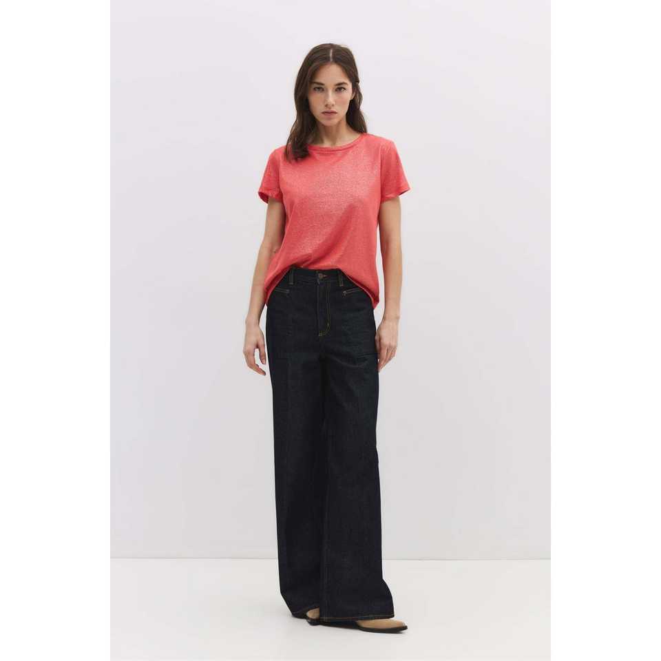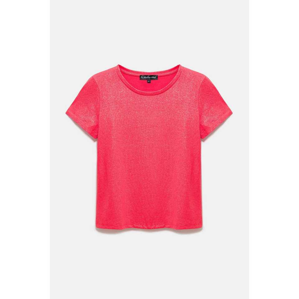 เสื้อคอกลมสไตล์ลำลองพร้อมผ้าประกายระยิบระยับ