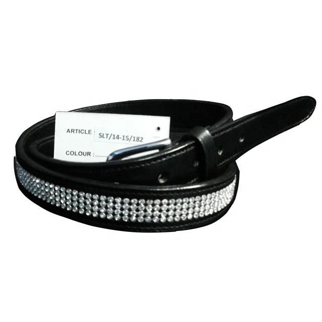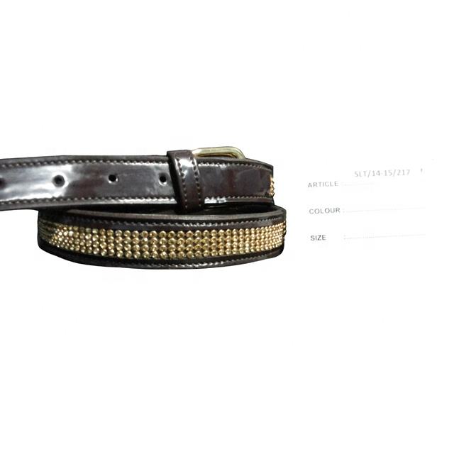 เข็มขัดหนังแท้สีน้ำตาลแบบลำลองพร้อมคริสตัลสีทองและเหล็กสำหรับหัวเข็มขัดหนังอินเดียเข็มขัดขี่ม้า