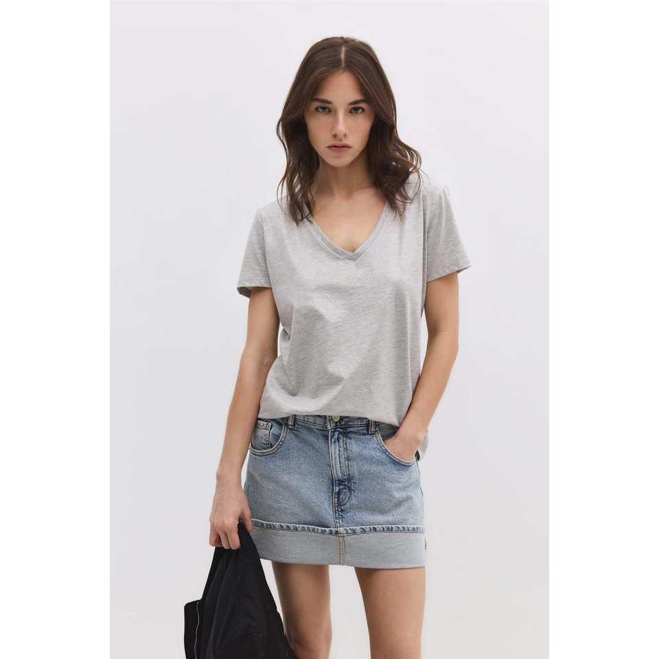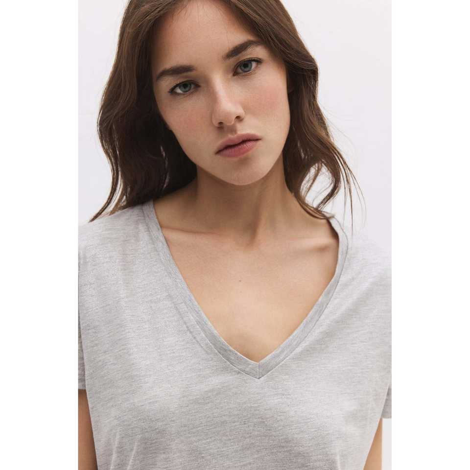 เสื้อเบสิคคอวีผ้าประกายสไตล์ลำลอง