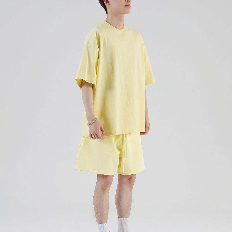 ชุดกีฬาคอกลมลำลองเสื้อยืดและชุดสั้นสำหรับผู้ชายชุดวิ่งฟิตเนส