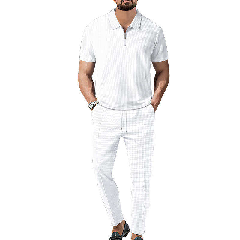 ชุดเสื้อผ้า2ชิ้นสำหรับผู้ชายชุดวอร์มวาฟเฟิลแบบกำหนดเองขนาดใหญ่ชุดวิ่งจ๊อกกิ้งแขนสั้นสำหรับผู้ชาย