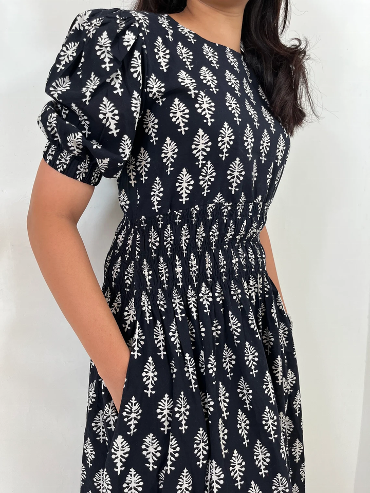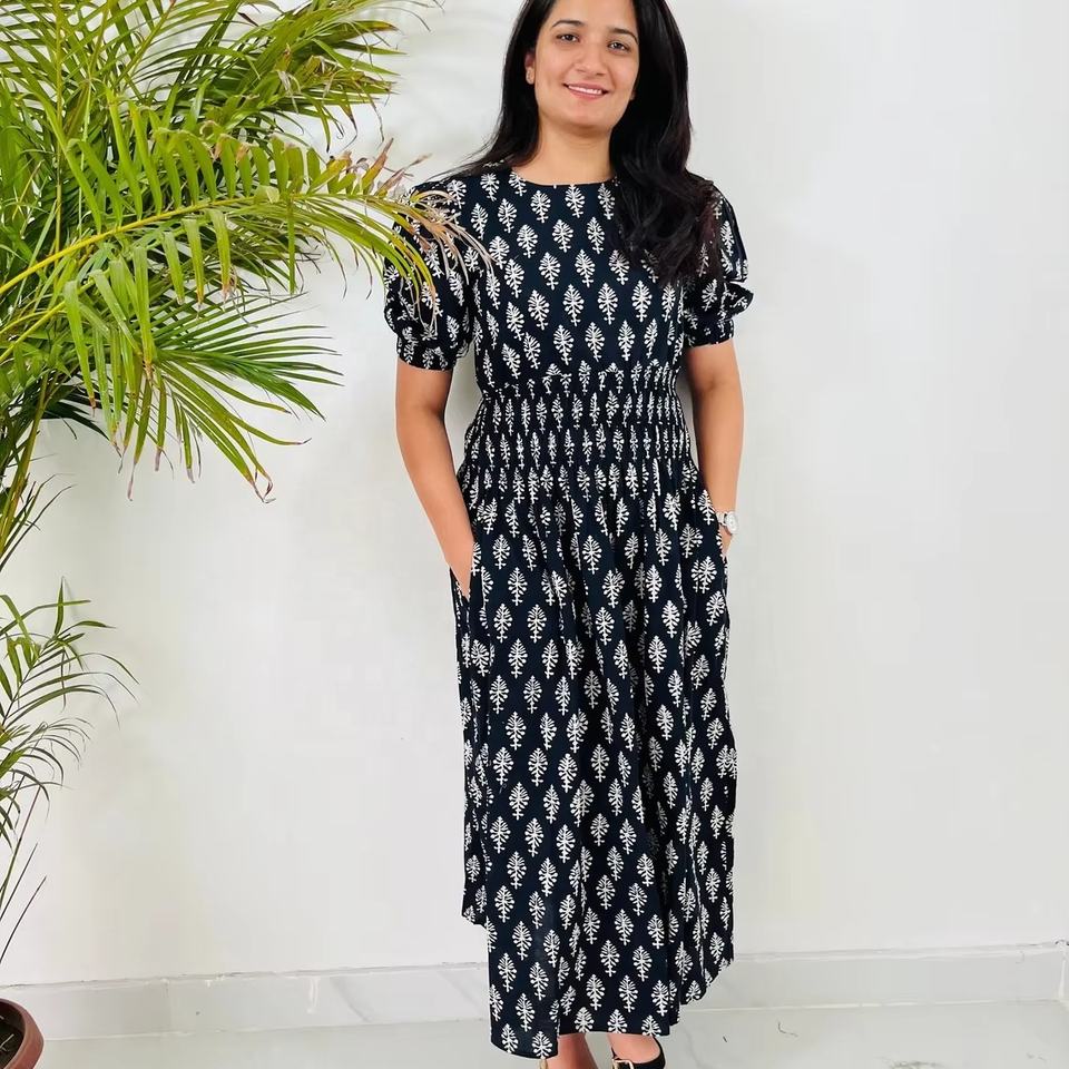 ชุดเดรสลำลองฤดูร้อนแบบยาว แขนสั้น ลายพิมพ์บล็อก ลายดอกไม้ ผ้าฝ้ายอินเดีย เสื้อคลุมปักลายดอกไม้ ชุดเดรสยาว