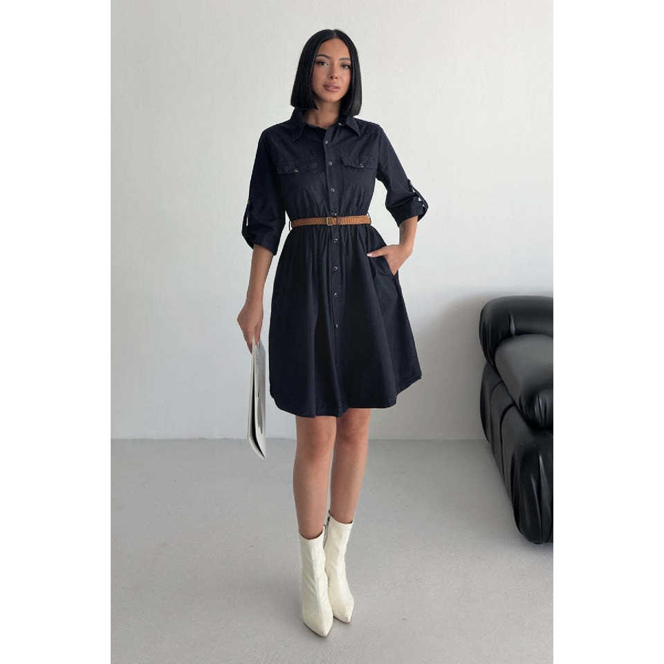 เดรสยีนส์ลำลองสไตล์มิดิสำหรับฤดูร้อน ดีไซน์เรียบง่ายแบบทางการ พร้อมสีฟอกอ่อนและดีเทลจับจีบ