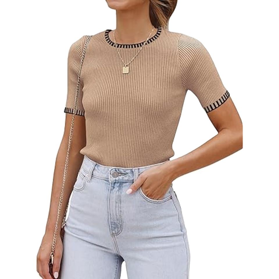 ชื่อผลิตภัณฑ์:เสื้อยืดตัดแขนคอขอบตะเข็บ Picot