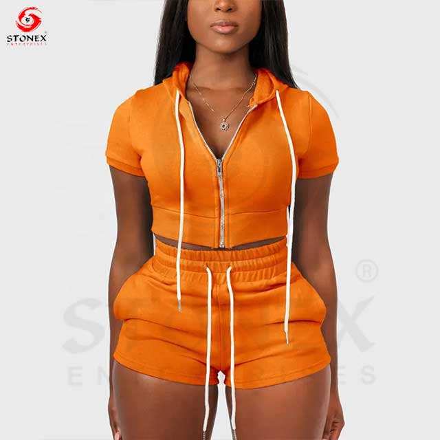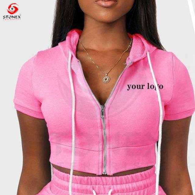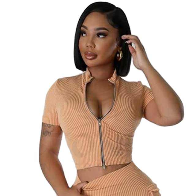 เสื้อยืดซิปหน้าไร้รอยต่อลำลองสำหรับฤดูร้อนเสื้อครอปแขนสั้นแบบเรียบง่าย
