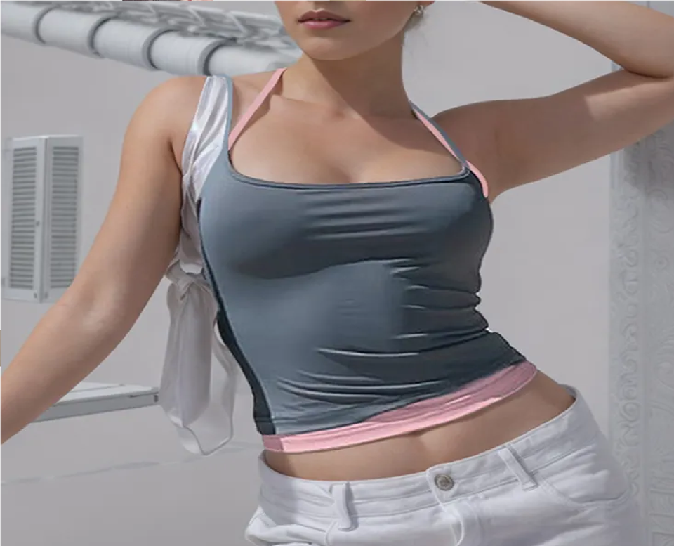 เสื้อแขนกุดลำลองสำหรับผู้หญิงเสื้อสายเดี่ยวคล้องคอสองชั้นแบบใหม่เข้ารูปเนื้อนุ่มสีตัดกันใหม่สำหรับฤดูร้อน