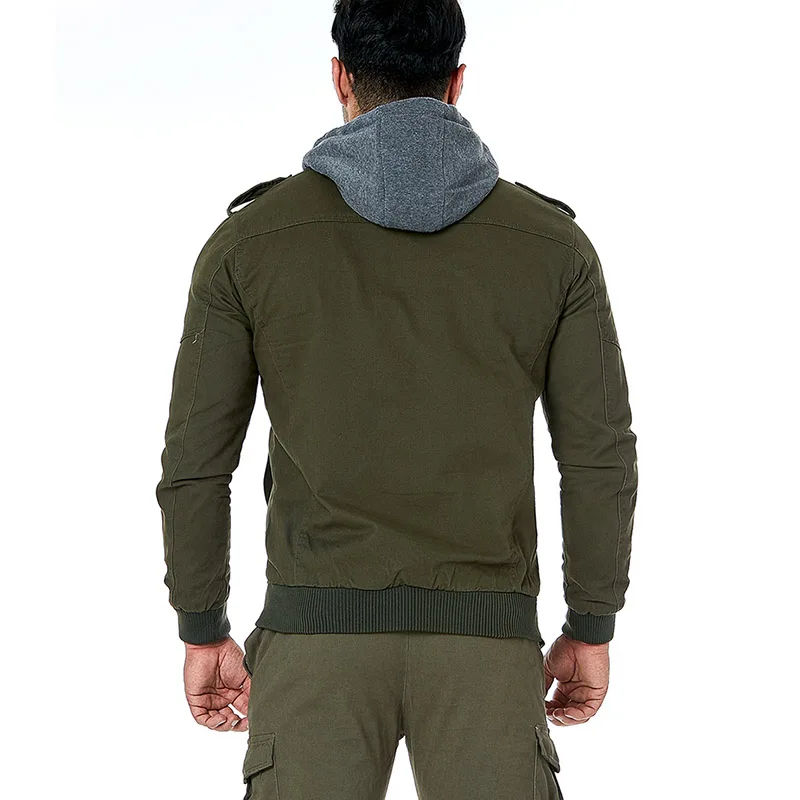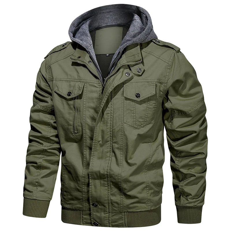 เสื้อแจ็คเก็ตบอมเบอร์แบบมีฮู้ดสไตล์วินเทจสำหรับผู้ชาย เหมาะสำหรับกิจกรรมกลางแจ้ง ทำงาน หรือใส่ลำลอง กันน้ำ กันลม ผลิตจากผ้าฝ้าย ฮู้ดถอดออกได้ ไซส์อเมริกา