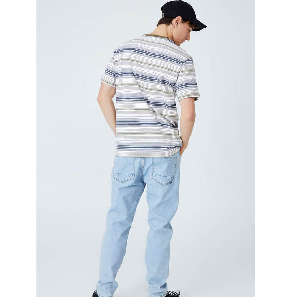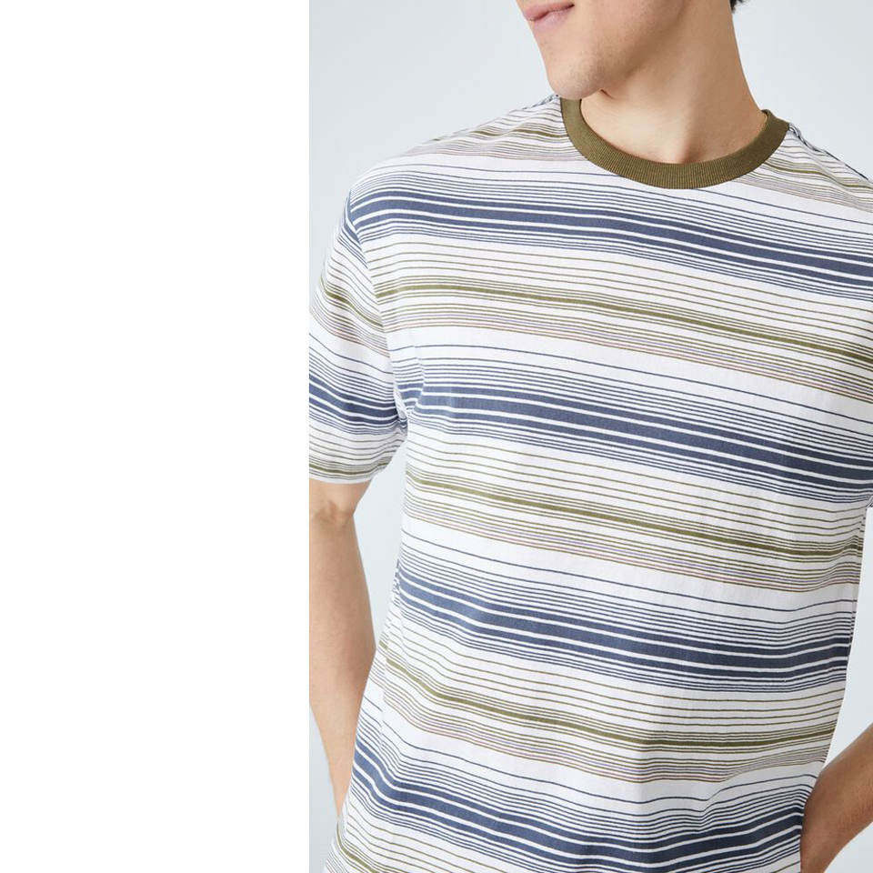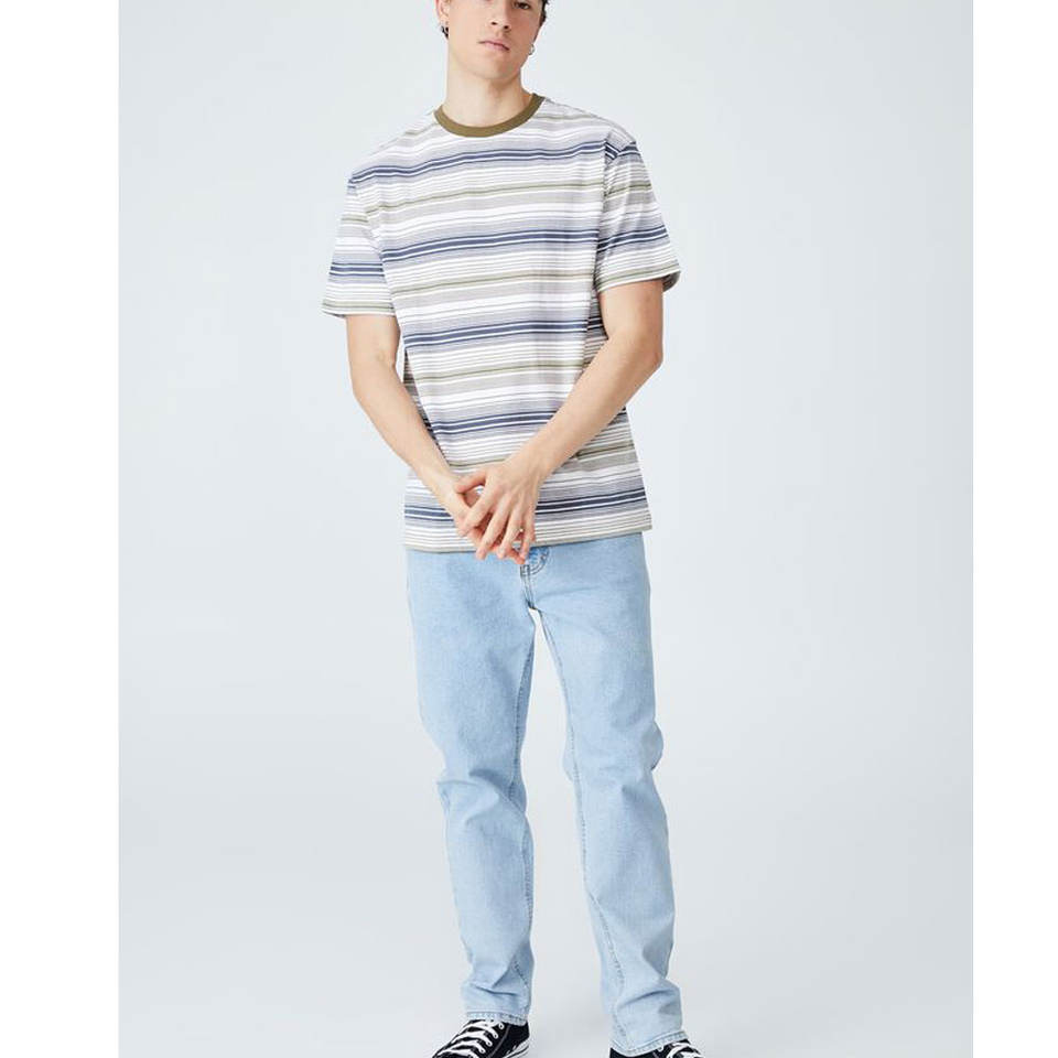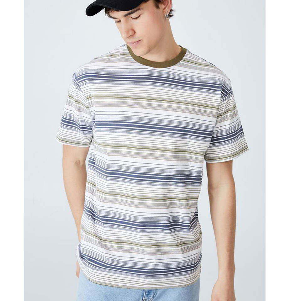 เสื้อยืดลำลองพิมพ์ลายทางคอกลม,เสื้อยืดผ้าฝ้ายแขนสั้นสไตล์ Slip-On สวมใส่สบาย