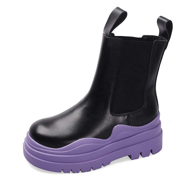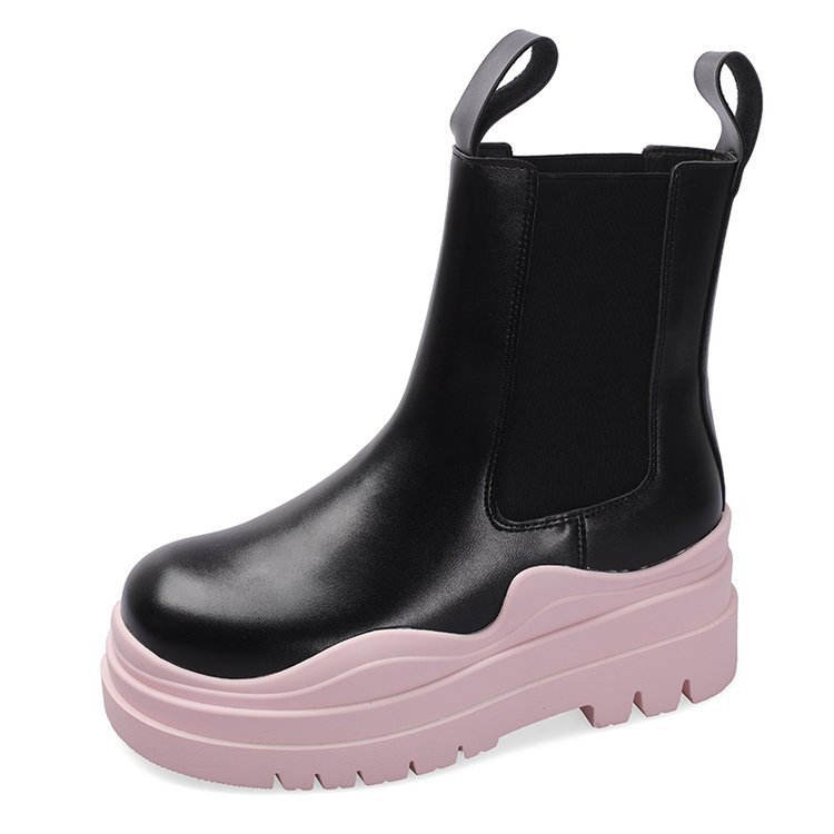 รองเท้าบูทเชลซีพื้นหนาแบบลำลอง ดีไซน์หนังกันน้ำ เสริมส้นเพิ่มความสูง พื้นรองเท้าแบบแพลตฟอร์ม สไตล์คาวบอย สำหรับฤดูใบไม้ร่วงและฤดูหนาว