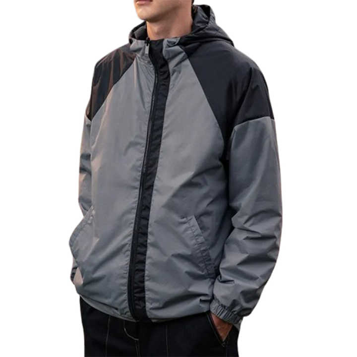 ชุดแจ็คเก็ตกันลมแบบสบายๆ ตัดต่อผ้าบางๆ สไตล์ฮิปฮอป ชุดกีฬา MOQ ต่ำ ราคาถูก