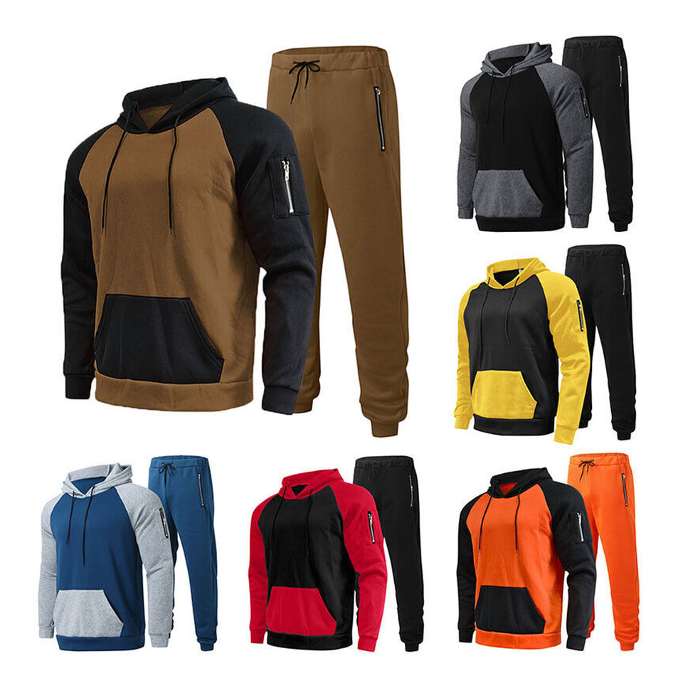 ชุดวอร์มลำลองสำหรับผู้ชายชุดวอร์มเข้ารูปแบบลำลองชุดสูทกางเกงชุดเสื้อมีฮู้ดและกางเกงผู้ชาย100% ผ้าฝ้าย