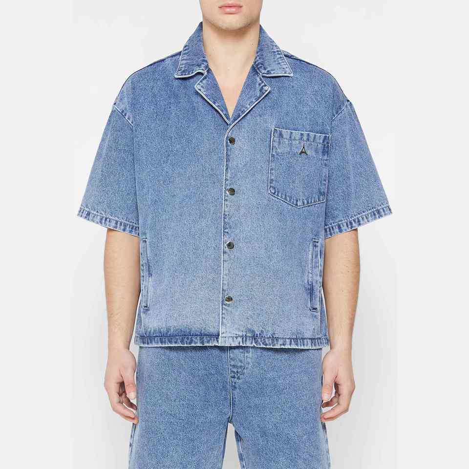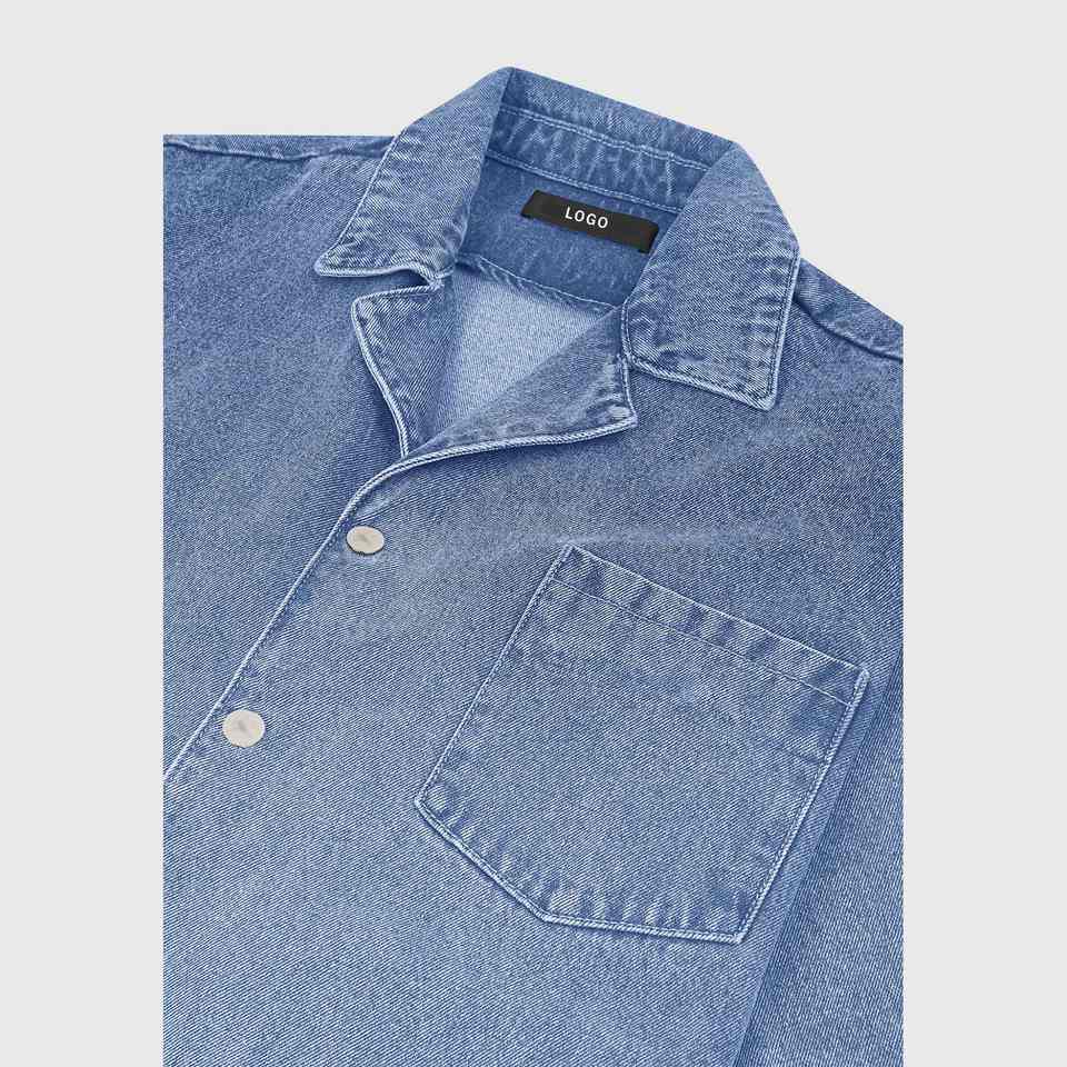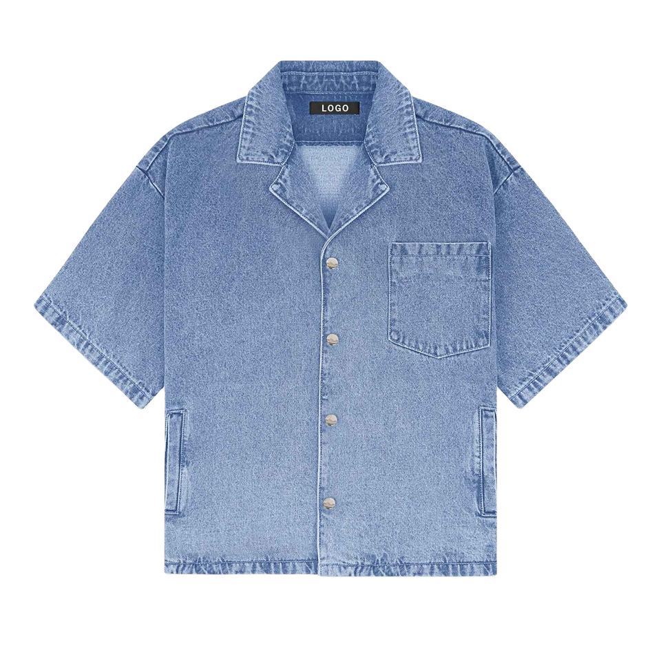 เสื้อยืดโอเวอร์ไซส์ทรงบ็อกซี่สไตล์วินเทจลำลองสำหรับผู้ชาย ผ้าฝ้ายเดนิมติดกระดุมสไตล์ตะวันตก ผ้าไม่ยับ ไซส์ผู้ใหญ่ สำหรับฤดูร้อน