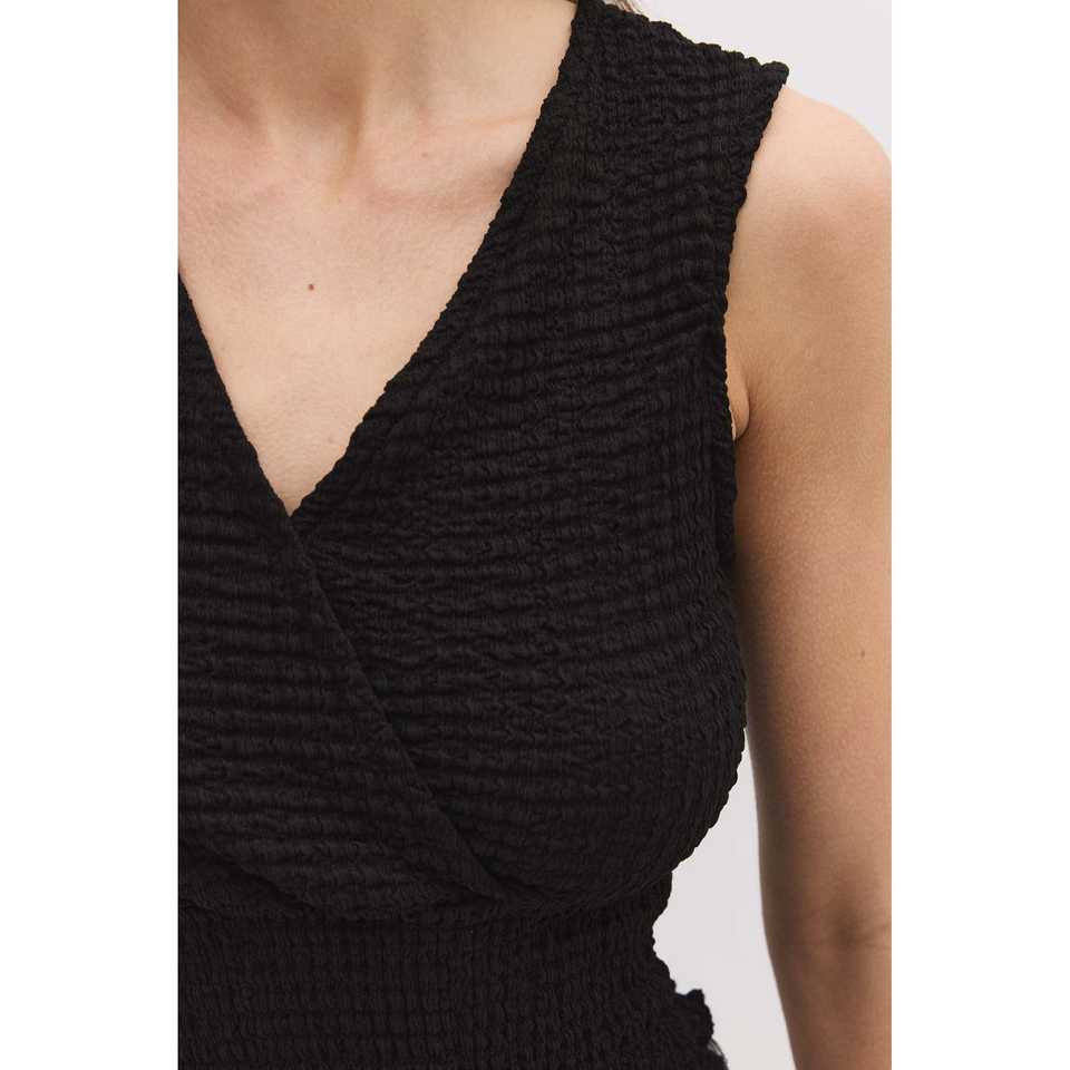 ชุดบอดี้สูทคอวีจีบเอวลำลองพร้อมโลโก้ด้านหน้า