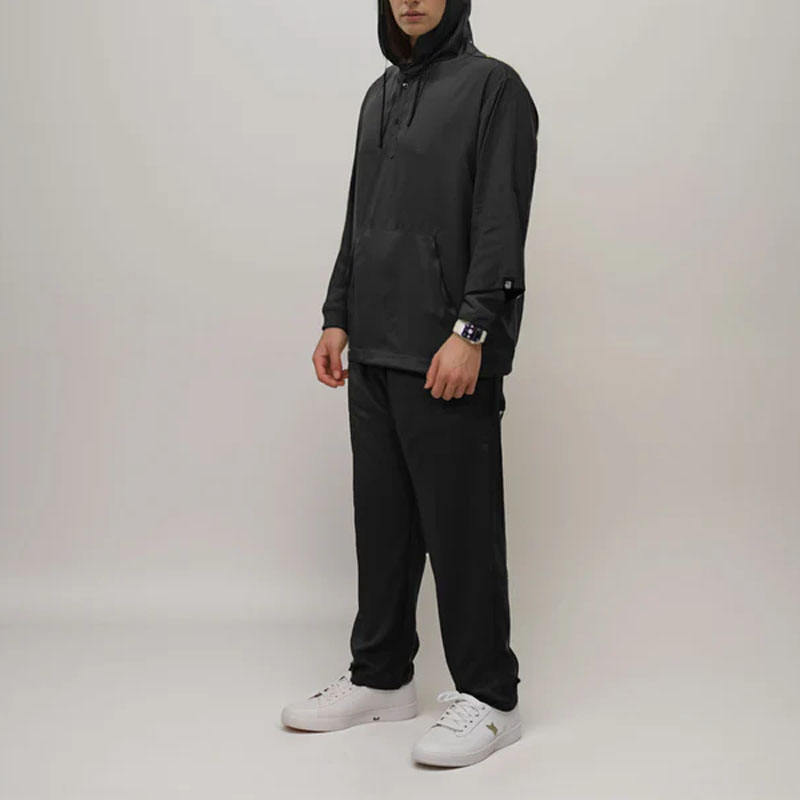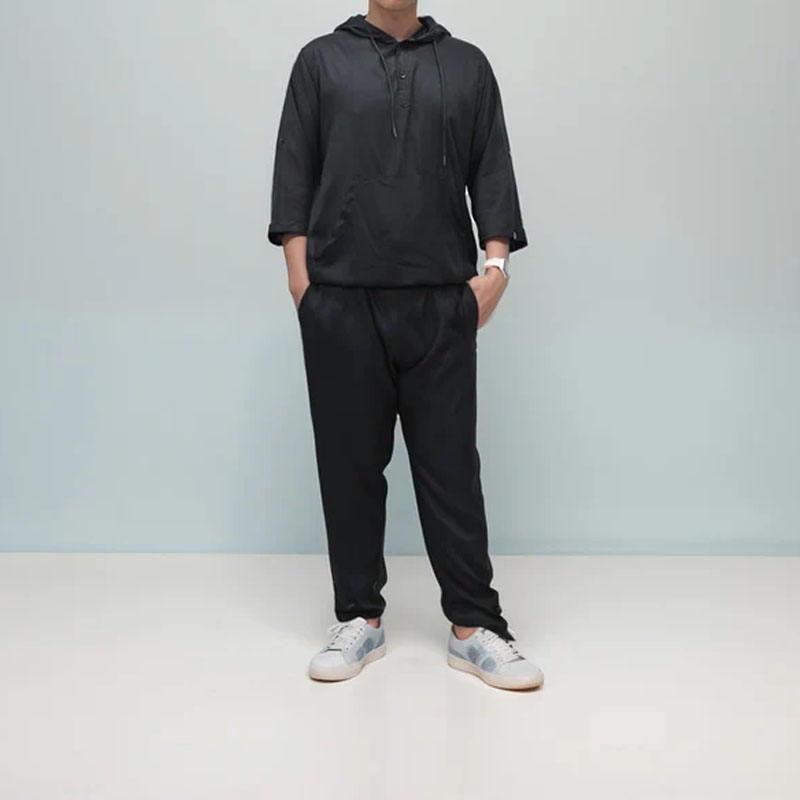 ชุดวอร์มสีดำสำหรับผู้ชายชุดวอร์มลำลองมีฮู้ดแบบหูรูดมีฮู้ดทรงหลวมชุดใส่อยู่บ้านคุณภาพสูง