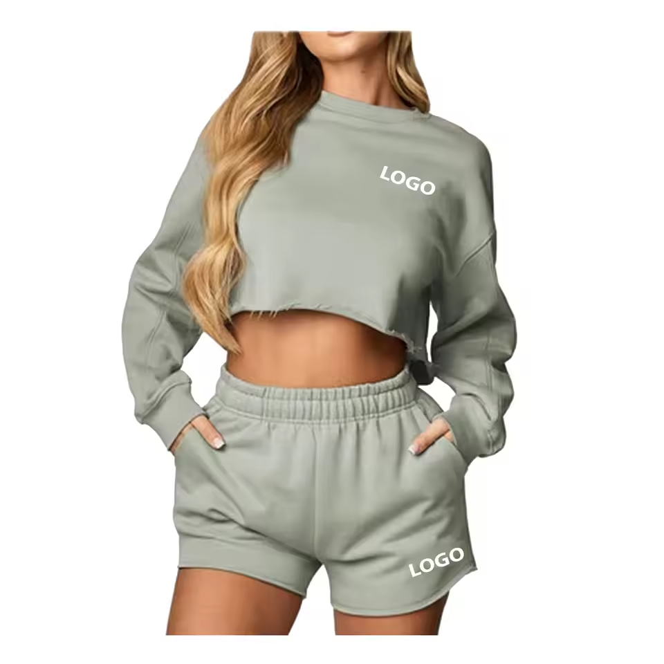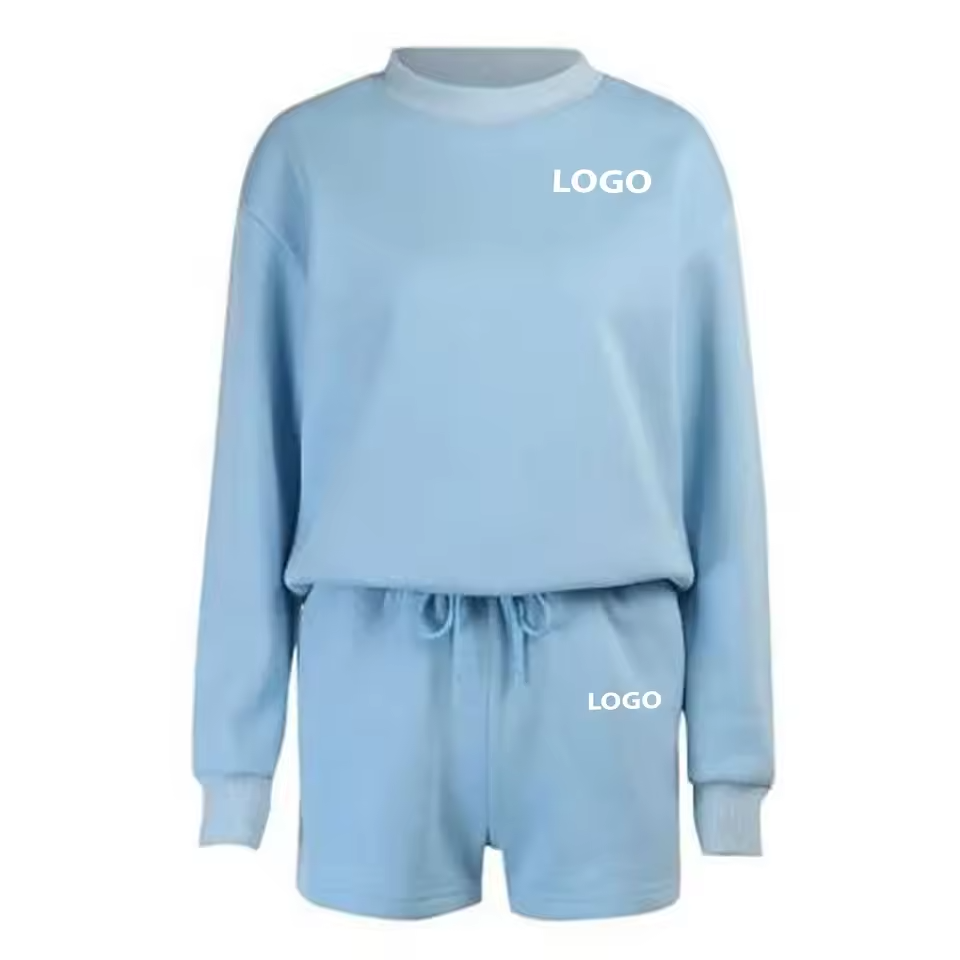 ชุดลำลองผ้าถักเนื้อนุ่มระบายอากาศดี สีพื้น เสื้อคอกลม แขนยาว ชุดเซ็ตแทรคสูท ลายพิมพ์ ความยาวคลุมเข่า ไซส์พลัส สำหรับฤดูร้อน