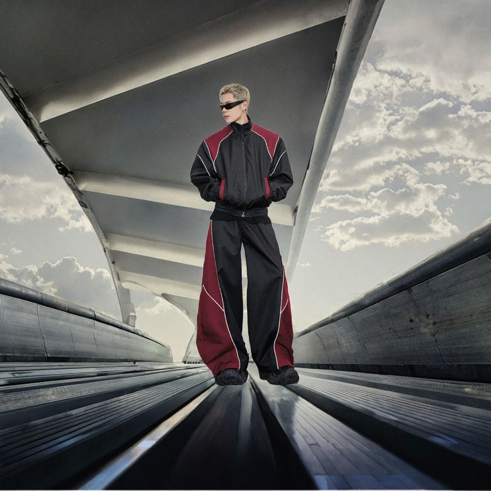 Casual Wear Breathable Zipper Jacket Flared Trouser 100% Cotton Reflector Lines New Design Regular Windbreaker Maternity