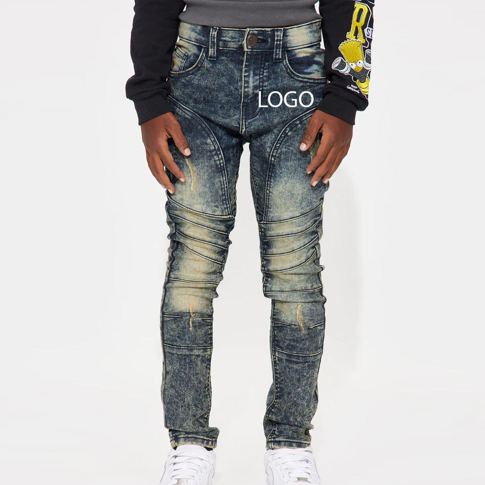 กางเกงยีนส์ทรงตรงสไตล์ลำลองสำหรับเด็กผู้ชาย ผลิตจากผ้าฝ้ายผสมเนื้อนุ่ม สำหรับการสั่งซื้อจำนวนมาก / ดีไซน์คุณภาพสูงพร้อมห่วงร้อยเชือก