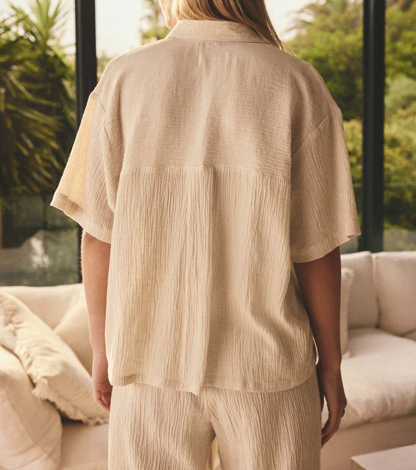 คอลเลคชั่นชุดลำลอง 2026 เดรสเชิ้ตผ้าคอร์ดเนื้อสั้น แขนสั้น สีธรรมชาติ ผ้าฝ้าย 100% เป็นมิตรกับสิ่งแวดล้อม ระบายอากาศได้ดี สีพื้น