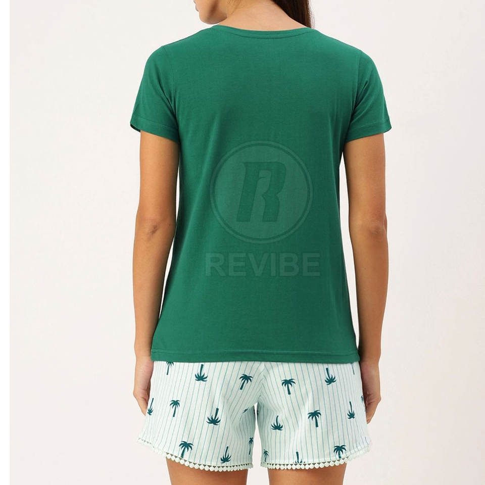 ชุดลำลองสั่งตัดสำหรับผู้หญิง ชุดเซ็ตขาสั้นพร้อมโลโก้สั่งทำ ชุดเซ็ตขาสั้นสำหรับผู้หญิงแบรนด์ส่วนตัว ผลิตในประเทศปากีสถาน
