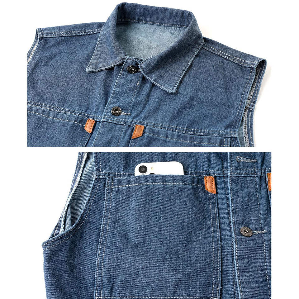 เสื้อกั๊กผ้ายีนส์สำหรับผู้ชายเสื้อลำลองผ้าเดนิมแขนกุดดีไซน์ไม่ซ้ำใคร