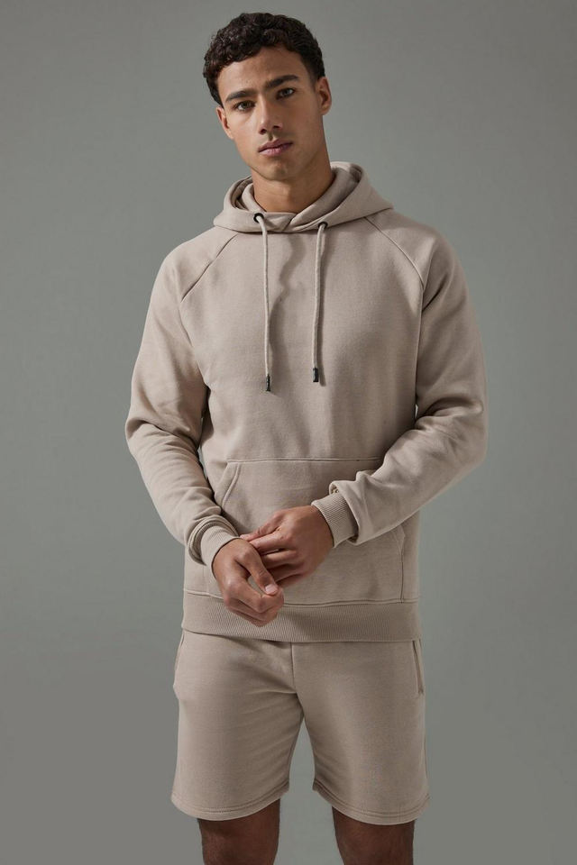 ชุดกางเกงขาสั้นและเสื้อมีฮู้ดของผู้ชายผ้าฝ้ายโอเวอร์ไซส์100% กางเกงขาสั้นและเสื้อมีหมวกออกแบบโลโก้ได้ตามต้องการ