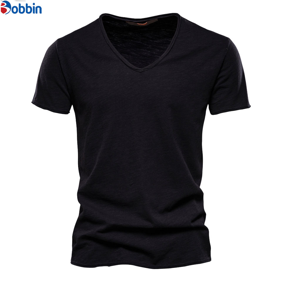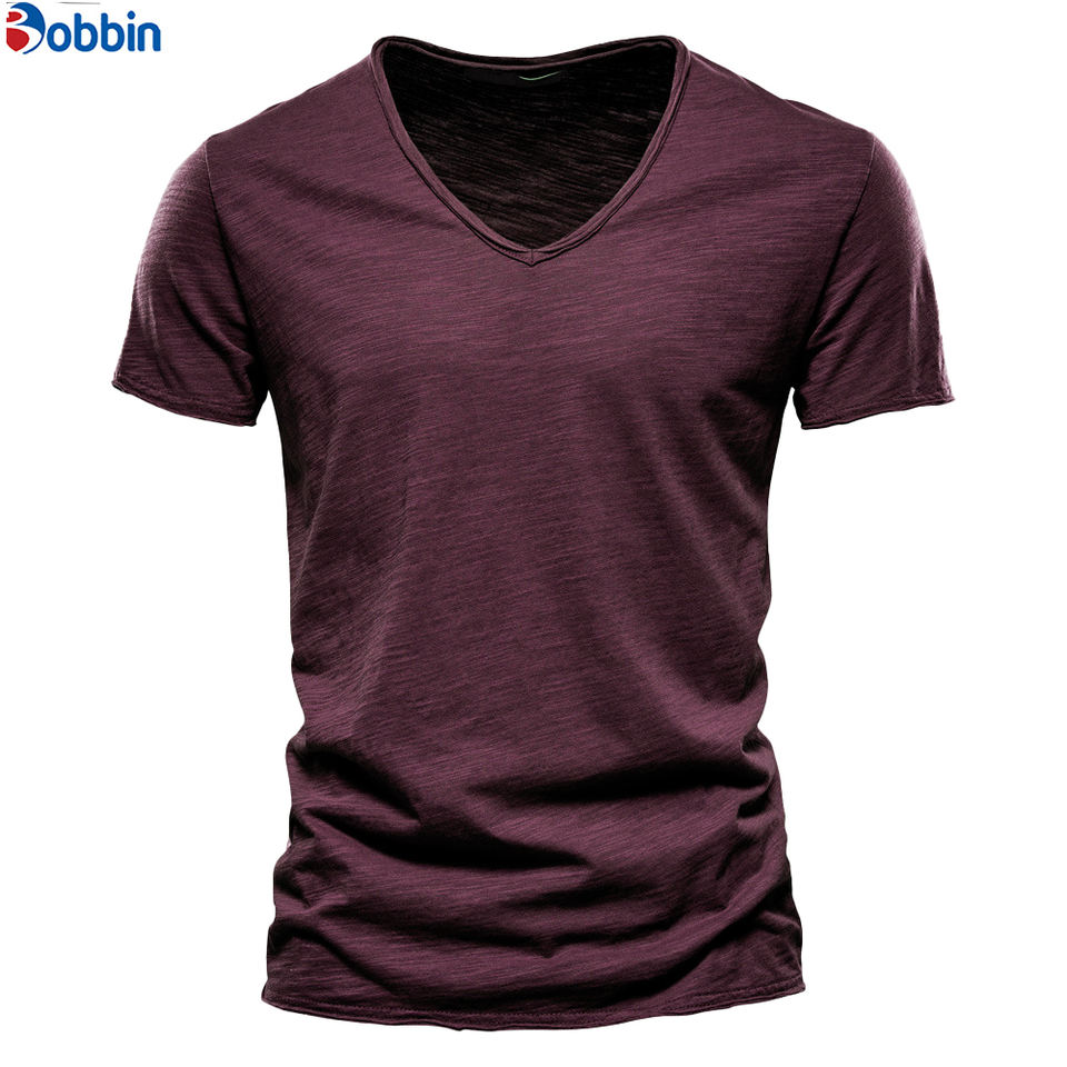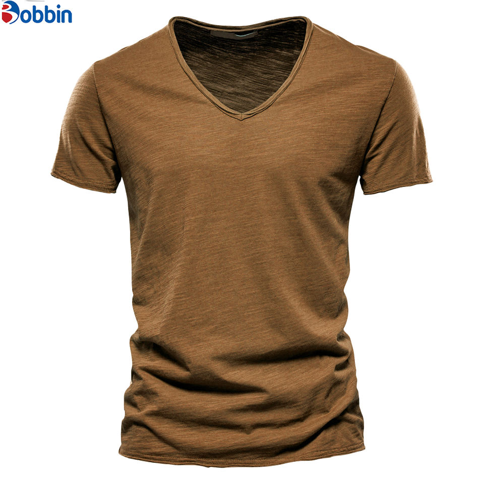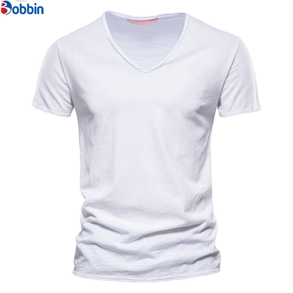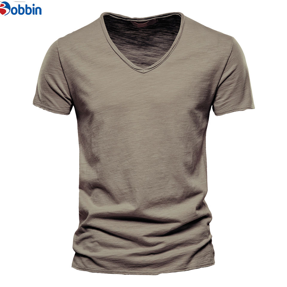เสื้อยืดลำลองสีพื้นไซส์ใหญ่สำหรับผู้ชาย เสื้อยืดคอตตอนคุณภาพสูงทรงโอเวอร์ไซส์ เสื้อยืดเรียบๆ คอวีลึก