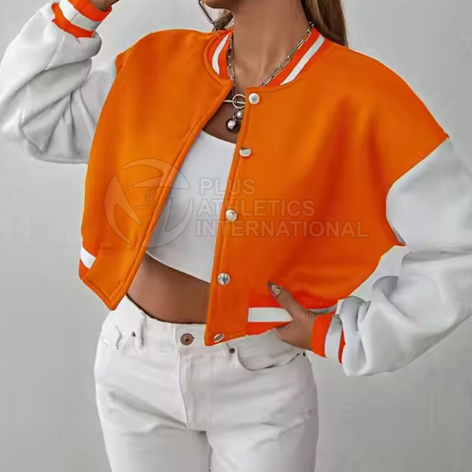 เสื้อครอปท็อปแจ็คเก็ตเลตเตอร์แมนลำลองสำหรับผู้หญิง คุณภาพพรีเมียม ราคาขายส่ง ผลิตในปากีสถาน