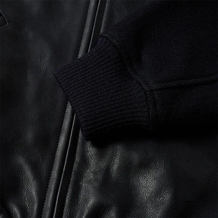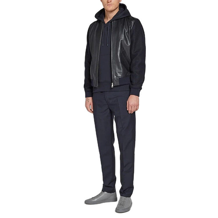 แจ็คเก็ตบอมเบอร์หนังแกะสำหรับผู้ชายแฟชั่นลำลองฤดูหนาวโลโก้ออกแบบได้ตามต้องการ