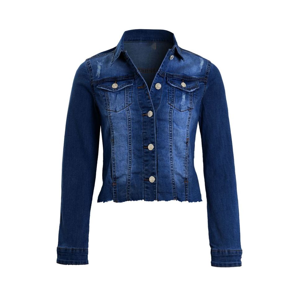 แจ็กเก็ตยีนส์สำหรับผู้หญิงแบบลำลองพร้อมเชือกรูดปรับได้และซิปปิดสำหรับสวมใส่ในชีวิตประจำวันแนวสปอร์ตและผ่อนคลาย