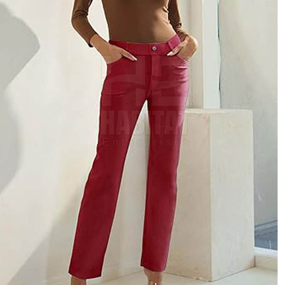 กางเกงหนังผู้หญิงลำลองทรงสกินนี่ ผ้าหนังนุ่ม คุณภาพสูง เหมาะสำหรับทำงาน