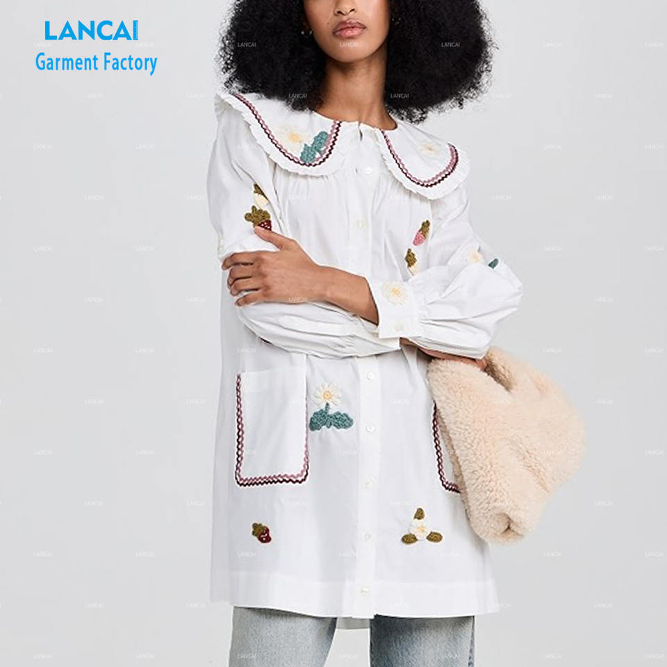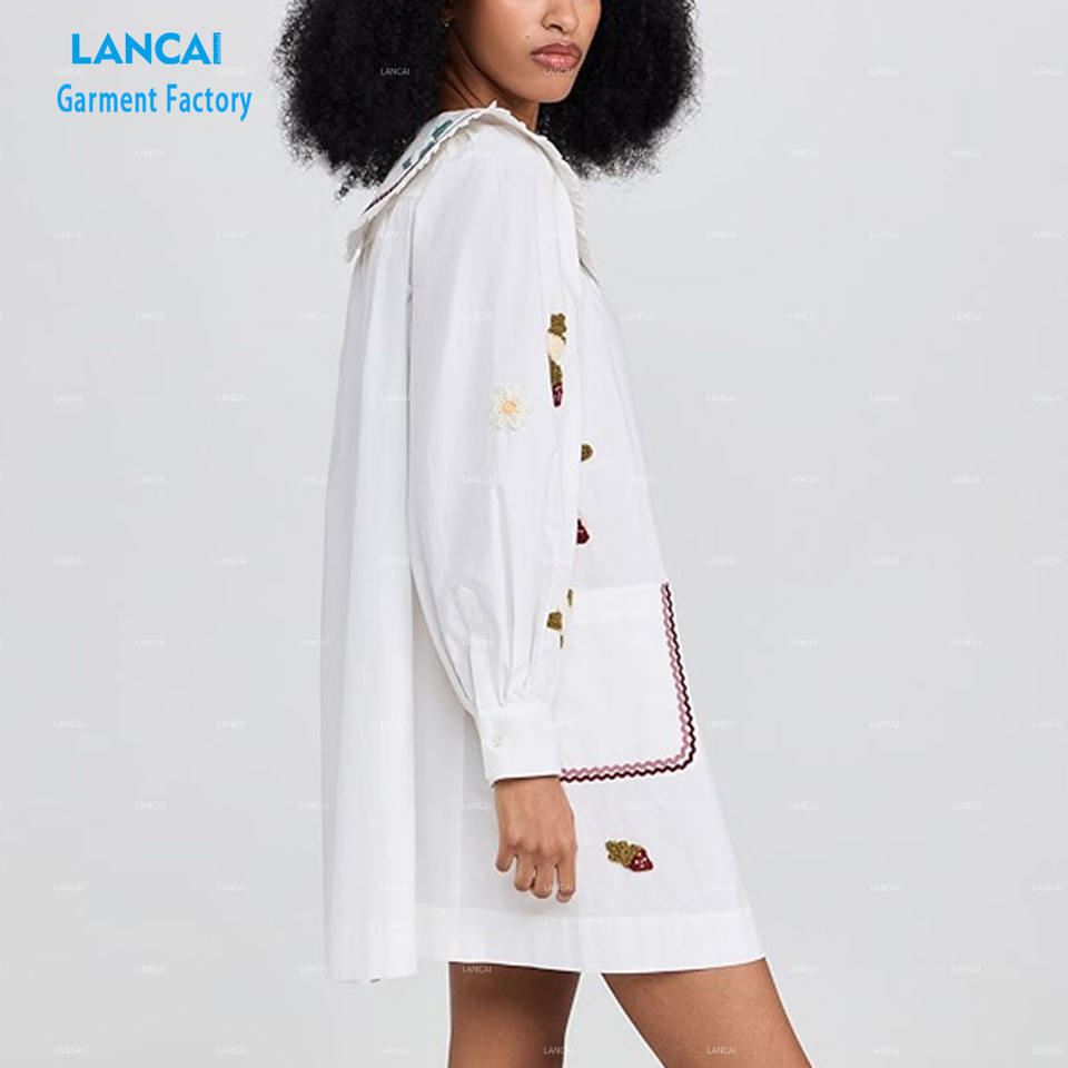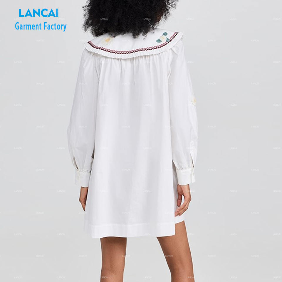 เดรสทรงกระสอบสำหรับผู้หญิงเดรสยาวคอปกปีเตอร์แพนแขนยาวแบบลำลองชุดเดรสมิดิเอวหลวมสำหรับโรงงานขายส่ง