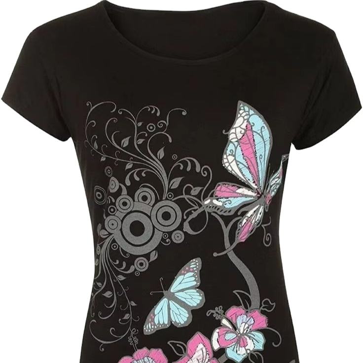 เสื้อยืดผ้าฝ้ายพิมพ์ลายลำลองสำหรับผู้หญิงเสื้อยืดแขนสั้นผ้าสแปนเด็กซ์ถักลูกไม้ถักลายพื้นปรับแต่งได้