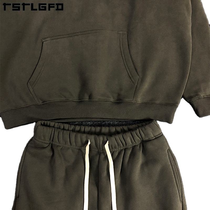 ชุดวอร์มผู้หญิงแบบสบายๆ สำหรับฤดูหนาว ผ้าฟลีซมีฮู้ด ชุดเซ็ต 2 ชิ้น เสื้อครอปและกางเกงขายาว